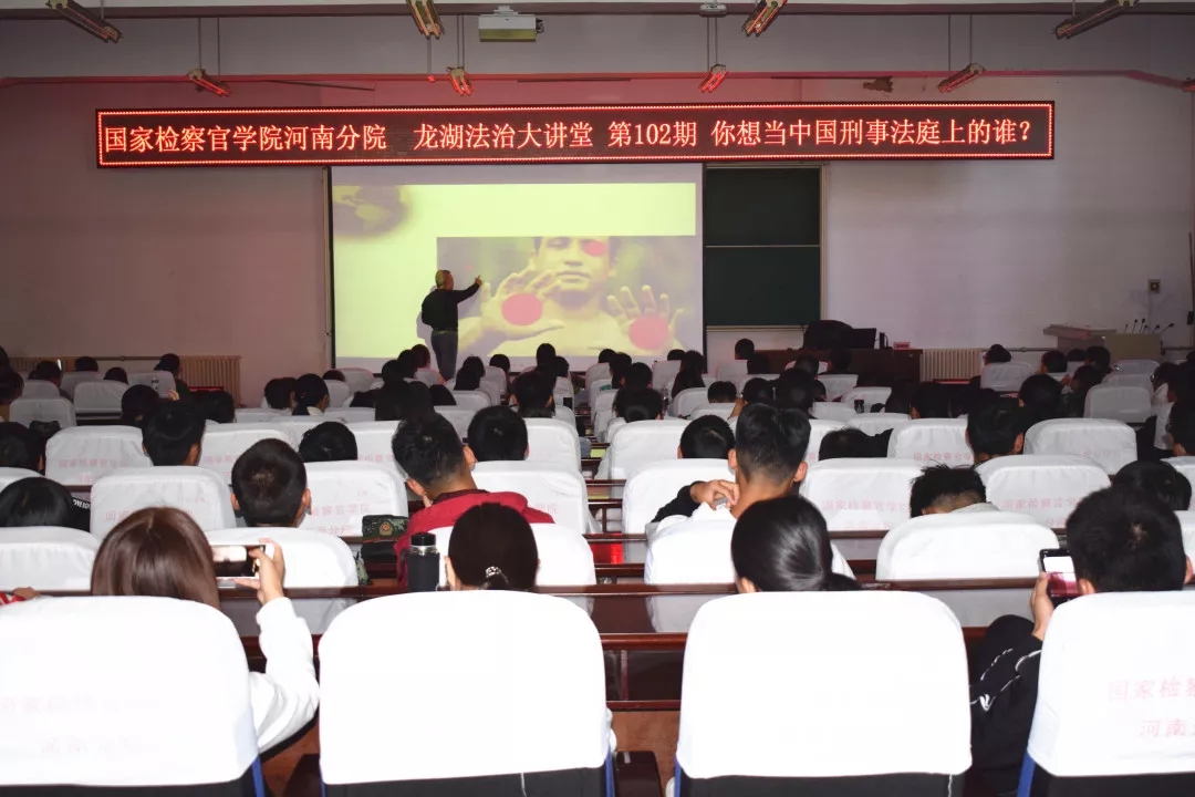 为使学生深入了解检察制度和刑事法庭的发展及变迁过程,10月29日下午,检察系特邀国家检察官学院检察理论教研部副主任、全国检察理论研究人才薛伟宏老师到今年会龙湖法治大讲堂,讲授“你想当中国刑事法庭上的谁”。检察系副主任郭荣军主持,检察系17和18级本科班全体学生到场聆听。
