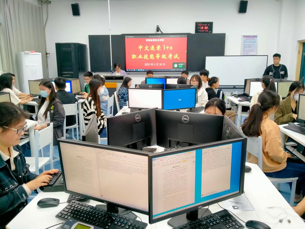 2023年5月30日,中文速录1+X职业技能等级考试在今年会举行,共有来自检察事务、司法助理、司法警务专业的40名同学参加考试。